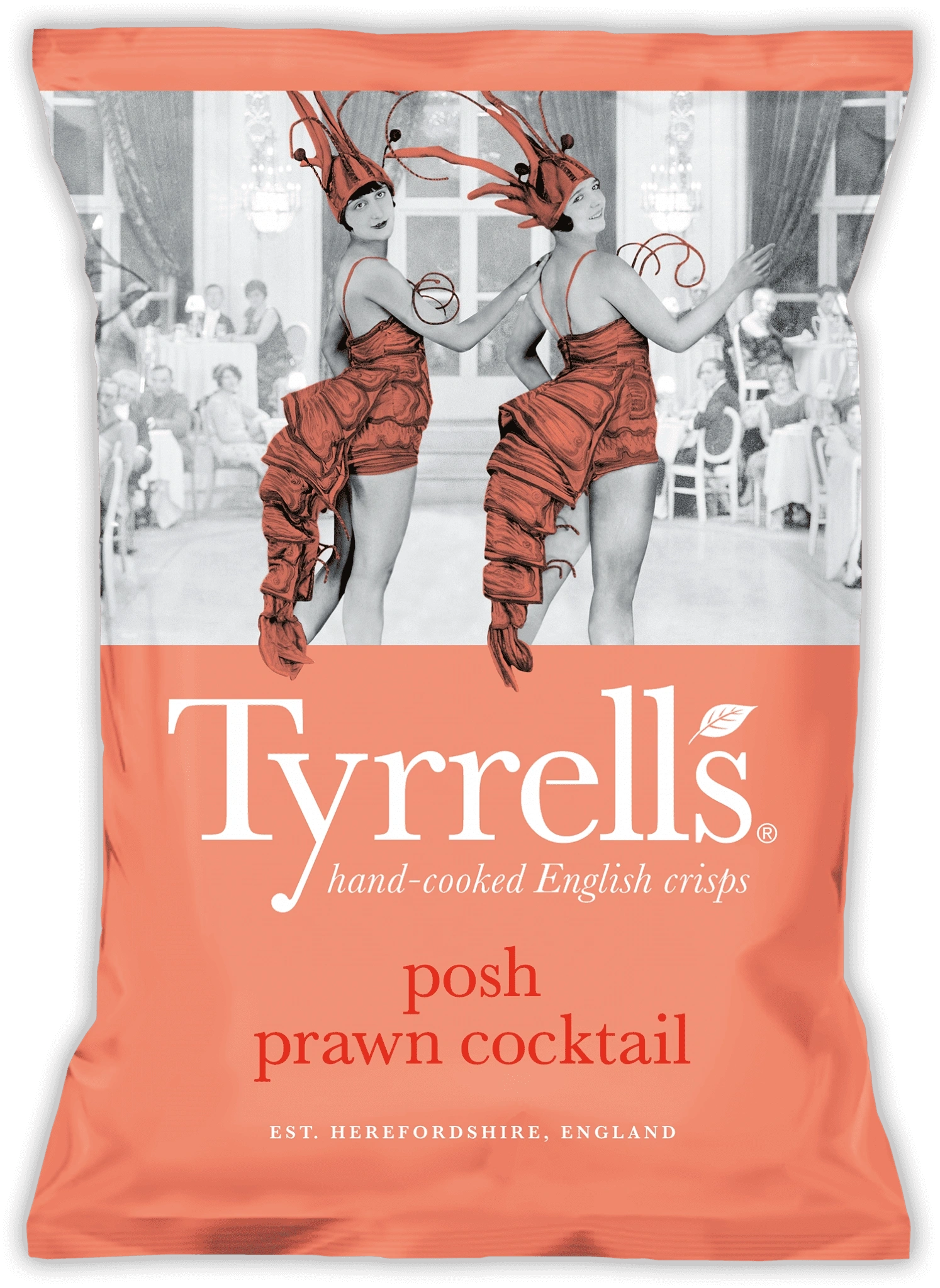 Hand-cooked English crisps with a posh prawn cocktail flavour. 24x40g